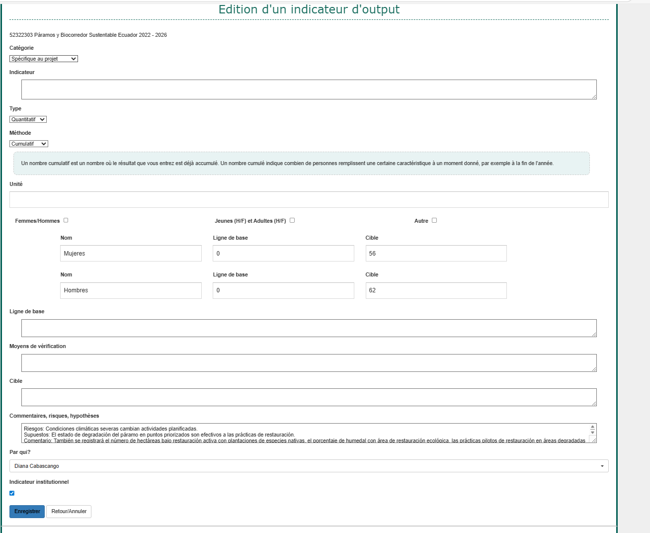 openJe souhaite que les entrées dans un indicateur au niveau projet soyent sauvegardées.