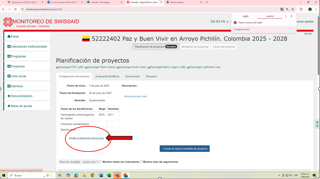 closedDeux utilisatrices reçoivent un message erreur, en cliquant sur "editer les informations du projet" dans son projet.